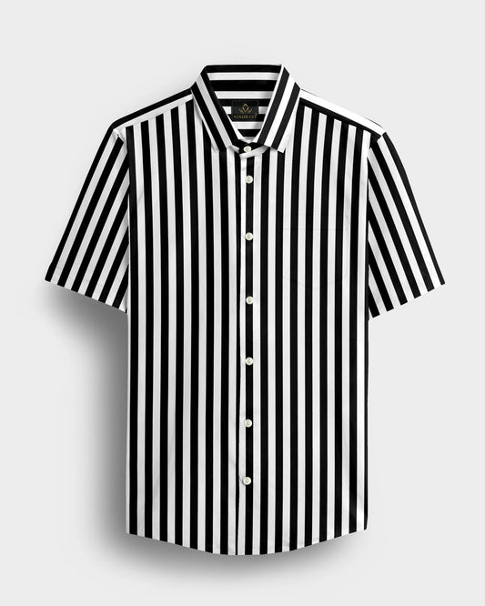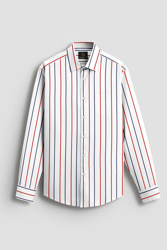 A classic shirt with a soft finish and cotton fabric. Amp up your formal Shirt with classy picks such as this white striped shirt from our new season collection. It is tailored to perfection and crafted from cotton fabric for a feel good factor. Team it with trousers and a blazer for the perfect Gentlemen Look.