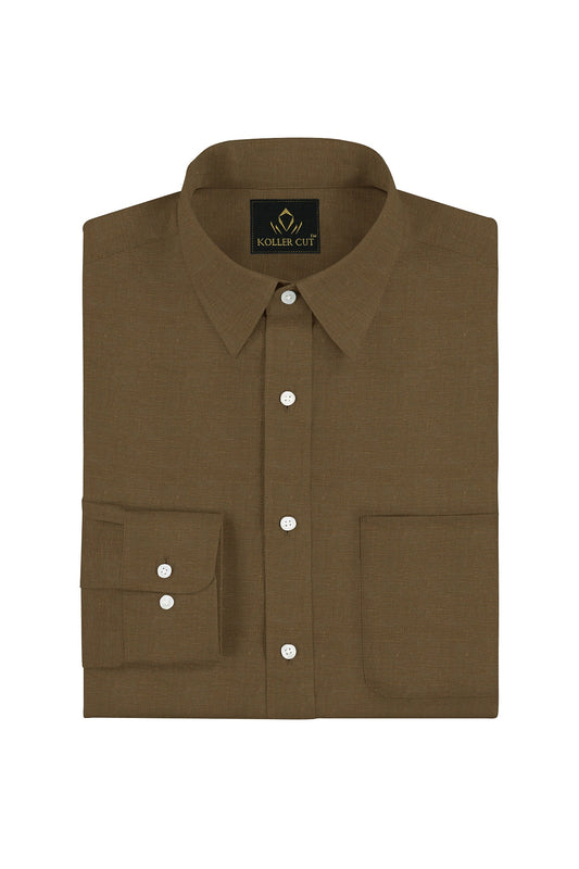 Olive Green Linen Shirts - A classic shirt with a soft finish and Linen fabric. The Fabric features - a highly popular look, Wear it to a meeting, wear it out to dinner, appropriate for casual wear and festive occasions. Woven with a fine count, this 100% linen shirt feels soft and airy with a strong, luxurious feel and can be worn all year round