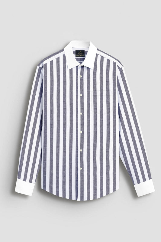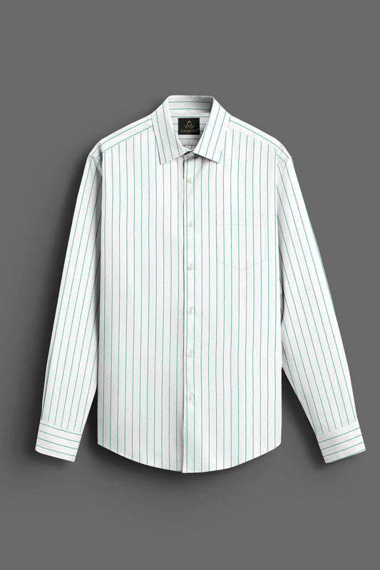 A classic shirt with a soft finish and cotton fabric. Amp up your formal Shirt with classy picks such as this white striped shirt from our new season collection. It is tailored to perfection and crafted from cotton fabric for a feel good factor. Team it with trousers and a blazer for the perfect Gentlemen Look.