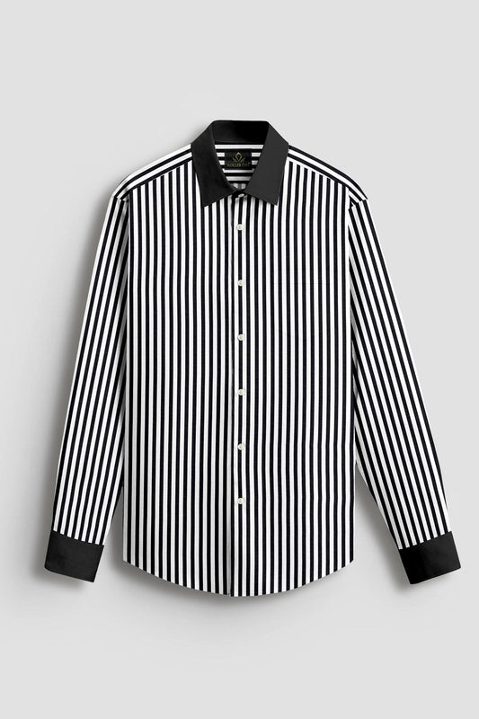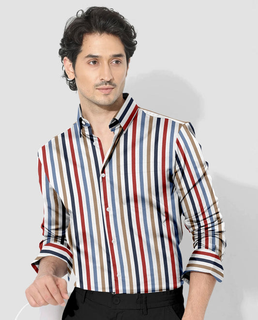 A classic shirt with a soft finish and cotton fabric. Amp up your formal Shirt with classy picks such as this white striped shirt from our new season collection. It is tailored to perfection and crafted from cotton fabric for a feel good factor. Team it with trousers and a blazer for the perfect Gentlemen Look.