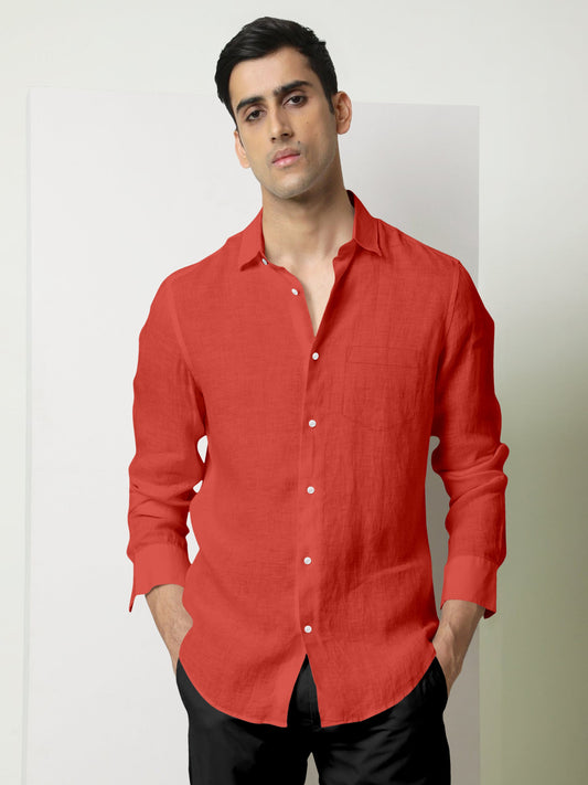 A classic shirt with a soft finish and Linen fabric. The Fabric features - a highly popular look, Wear it to a meeting, wear it out to dinner, appropriate for casual wear and festive occasions. Woven with a fine count, this 100% linen shirt feels soft and airy with a strong, luxurious feel and can be worn all year round